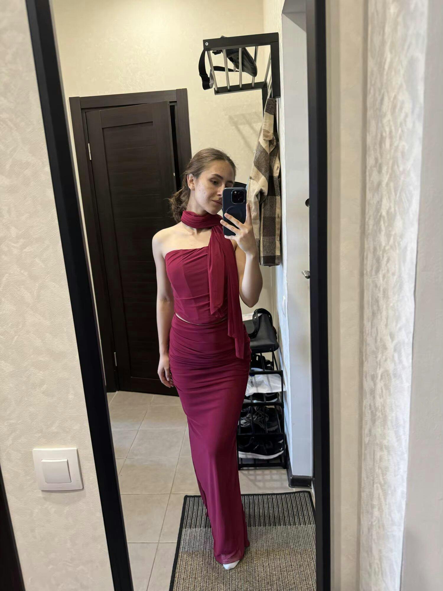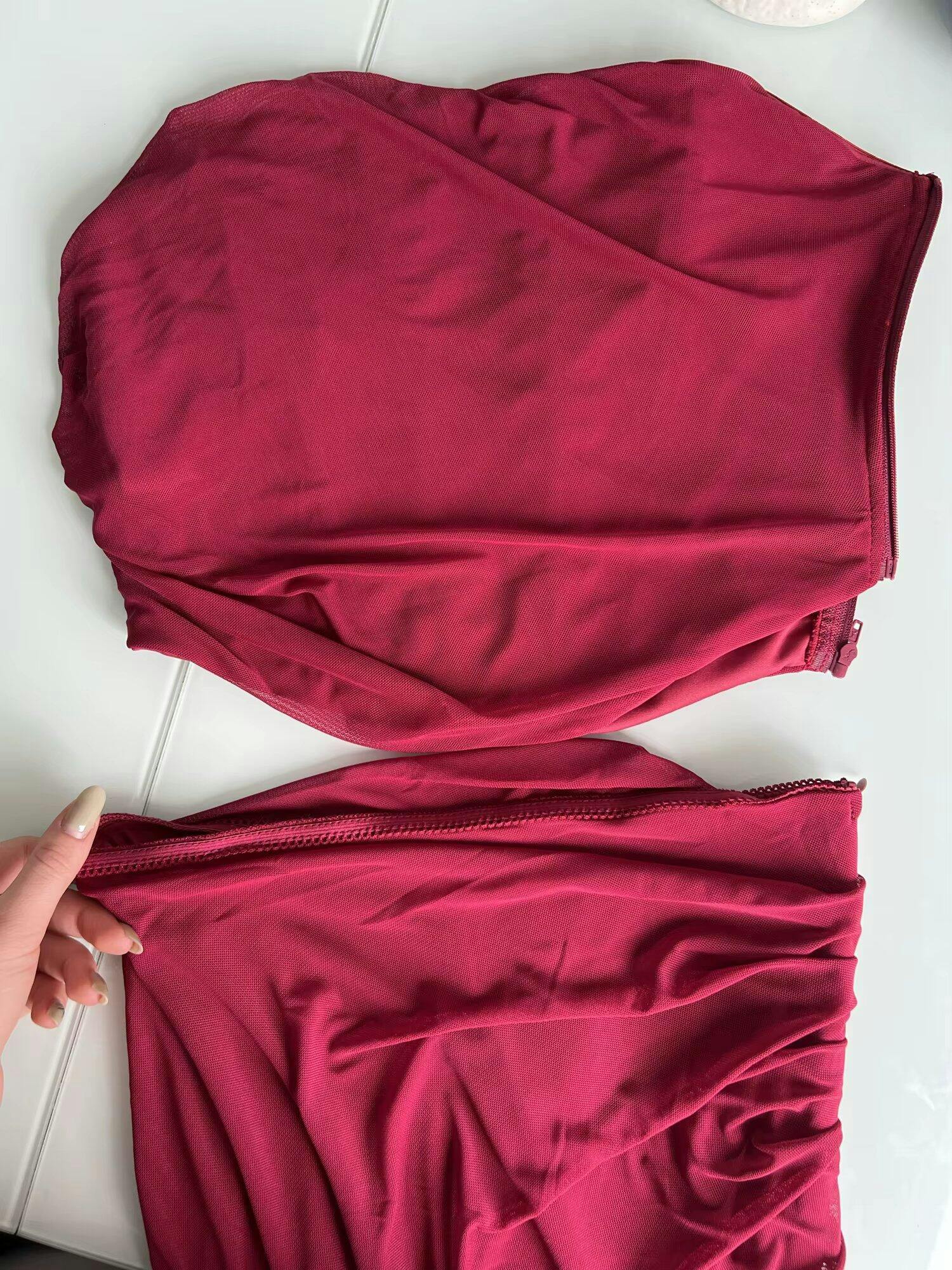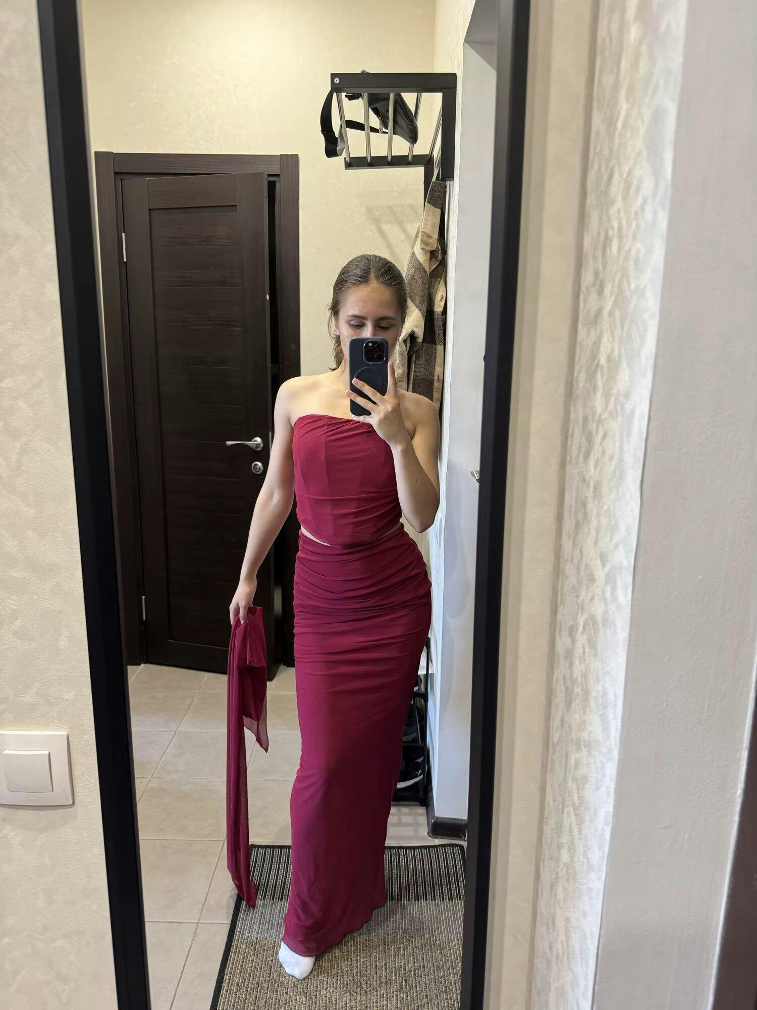 Our 'Liora' maxi is a modern take on a classic mesh silhouette, reimagined as a three-piece set: a corset, a maxi skirt, and a matching scarf. Designed to be worn together and sold as one, it beautifully enhances every curve. Crafted from soft stretch mesh, the set pairs the fluidity of a gathered skirt with the structured, romantic touch of the corset. The mid-rise skirt features a concealed side zip, creating an elegant and timeless look. The lightweight scarf completes the set, adding styling versatility and a chic finish.