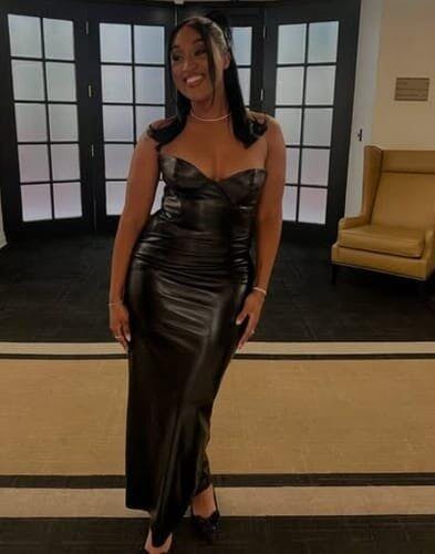 Our 'Mireva midi is a bold re-imagination of timeless glamour, designed to make a statement while sculpting every curve. Crafted from luxurious stretch leather, this strapless dress features a cupped bodice for structure and support, paired with a sleek skirt that drapes effortlessly from the hips. The dramatic lace-up back detail adds a striking finish, blending elegance with a touch of daring allure. With its body-hugging silhouette and flawless tailoring, Vanessa is the definition of sophistication with an edge.